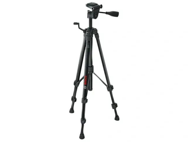 The Bosch BT 150 Professional Building Tripod is made from durable yet lightweight aluminium. Each leg's height can be controlled individually, enabling high stability on any floor. A circular vial provides functionality and precision.