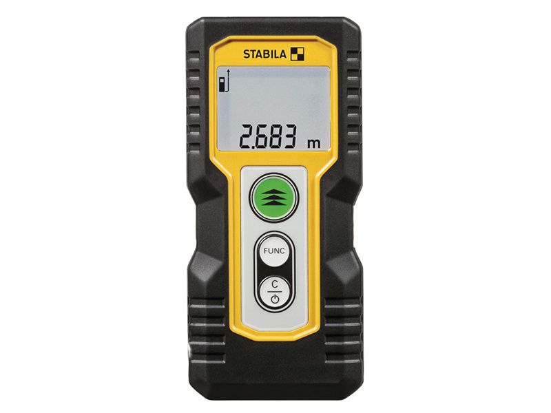 The Stabila LD 220 Laser Distancer is a compact, easy-to-use laser with 4 basic measuring functions: length, area, volume and continuous measurement. It has a large, back lit screen with large readout making it easy to read in any environment. With an impact-resistant, IP54 rated housing with shock-absorbent soft-grip casing.