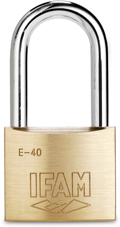 Extruded brass body. Hardened carbon-nitride, chrome plated steel shackle. Pick proof. Supplied with 2 keys.
