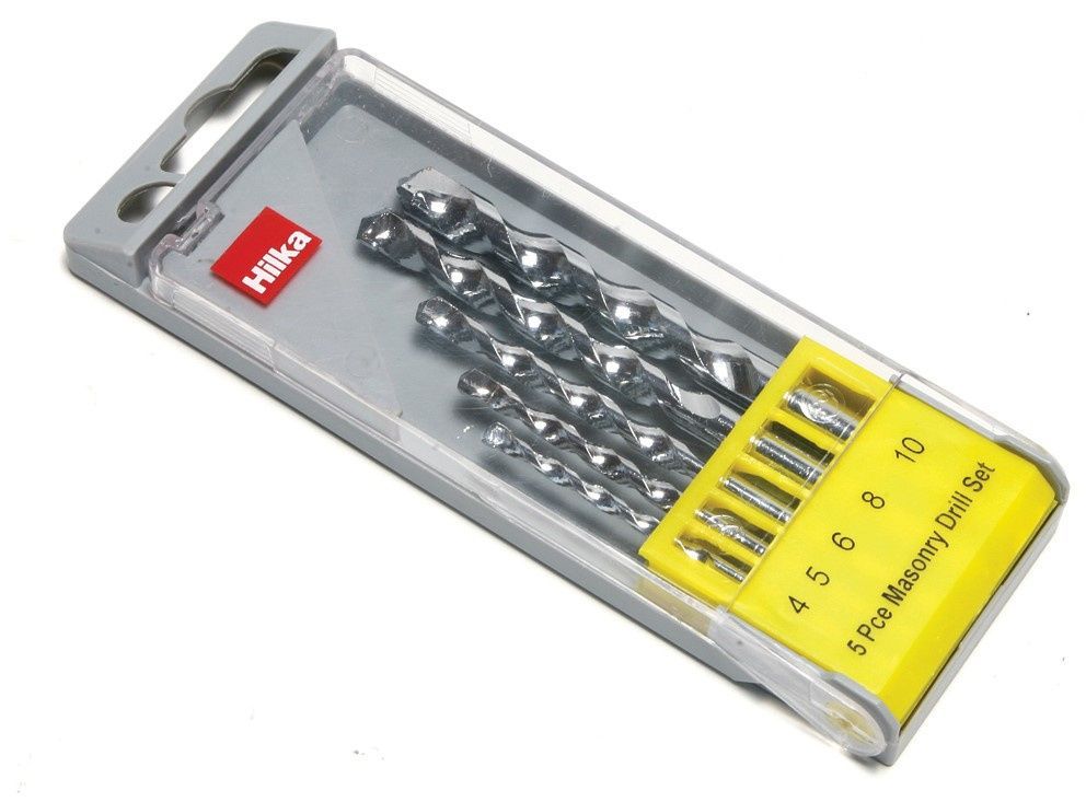 High quality bright finish masonry drills sizes: 4, 5, 6, 8, 10mm in plastic case.