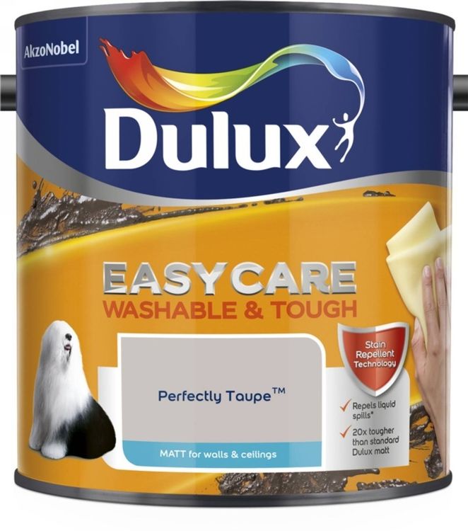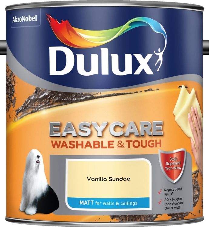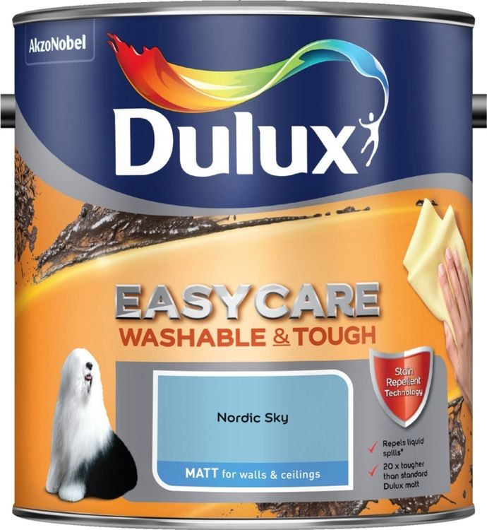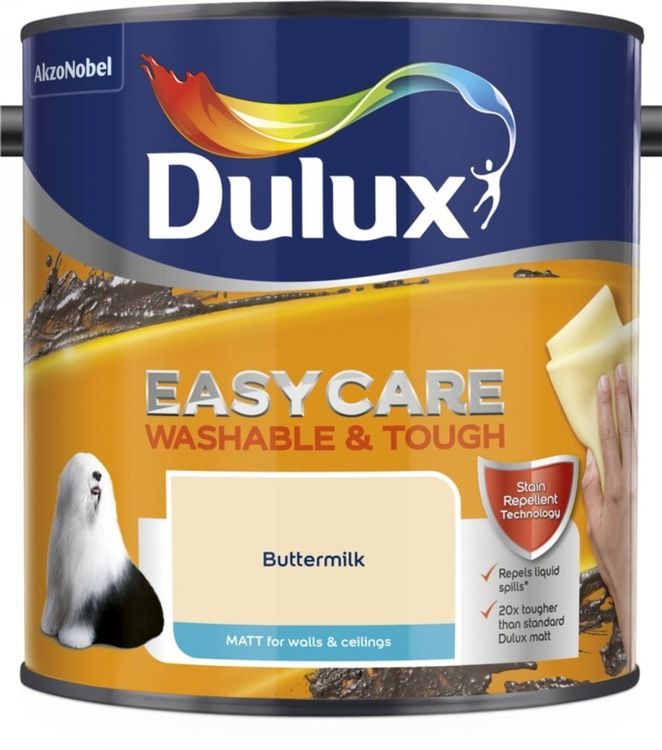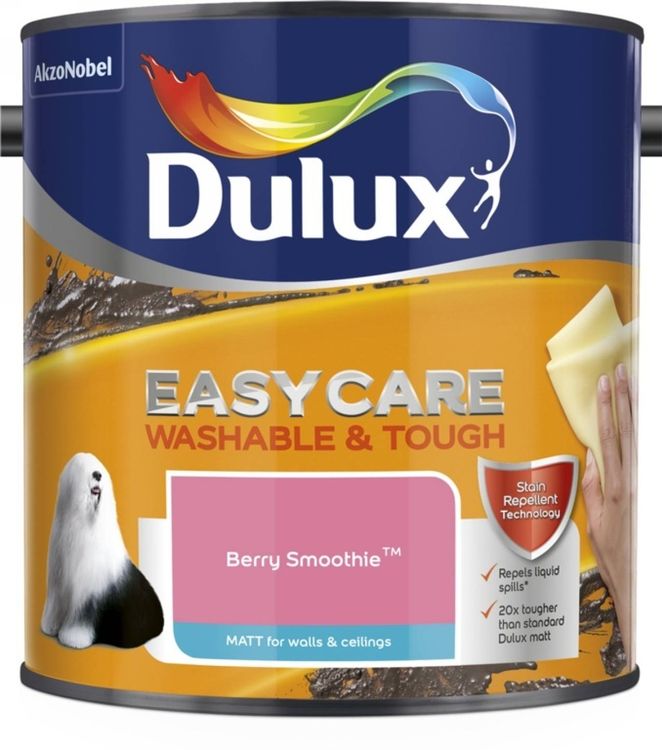Dulux Easycare Matt is a durable and washable interior paint designed to keep walls looking fresh for longer. Using advanced stain-repellent technology, this paint creates a tough finish that is 20 times more resilient than standard Dulux matt, making it ideal for busy areas of the home.
