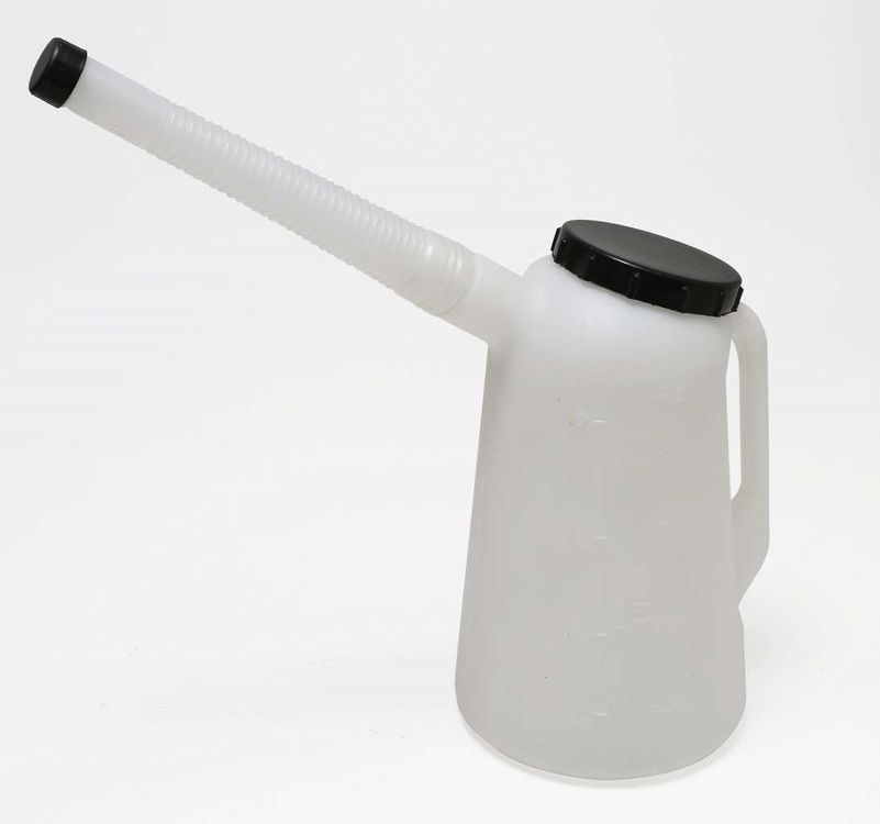 Versatile measuring jug for use at home, garage, or workshop. Complete with flexible spout to aid pouring and avoid spills. Suitable for most liquids including oil and fuel.