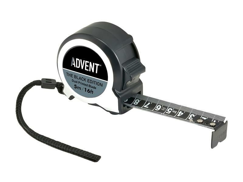 The Advent Black Edition Tape has a double-sided, nylon coated black blade with metric and imperial graduations. Fitted with a true zero end hook for accurate measurements. Contained within a compact, ergonomically designed case.