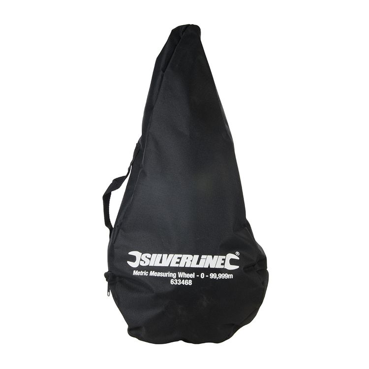 Strong aluminium handle with rubber grip and lightweight plastic wheel. Instant zero default lever. Telescopic handle and stand support. Compact design with a canvas storage bag. Telescopic range: 620 - 950mm. Measurement range 0 - 99,999.9m.