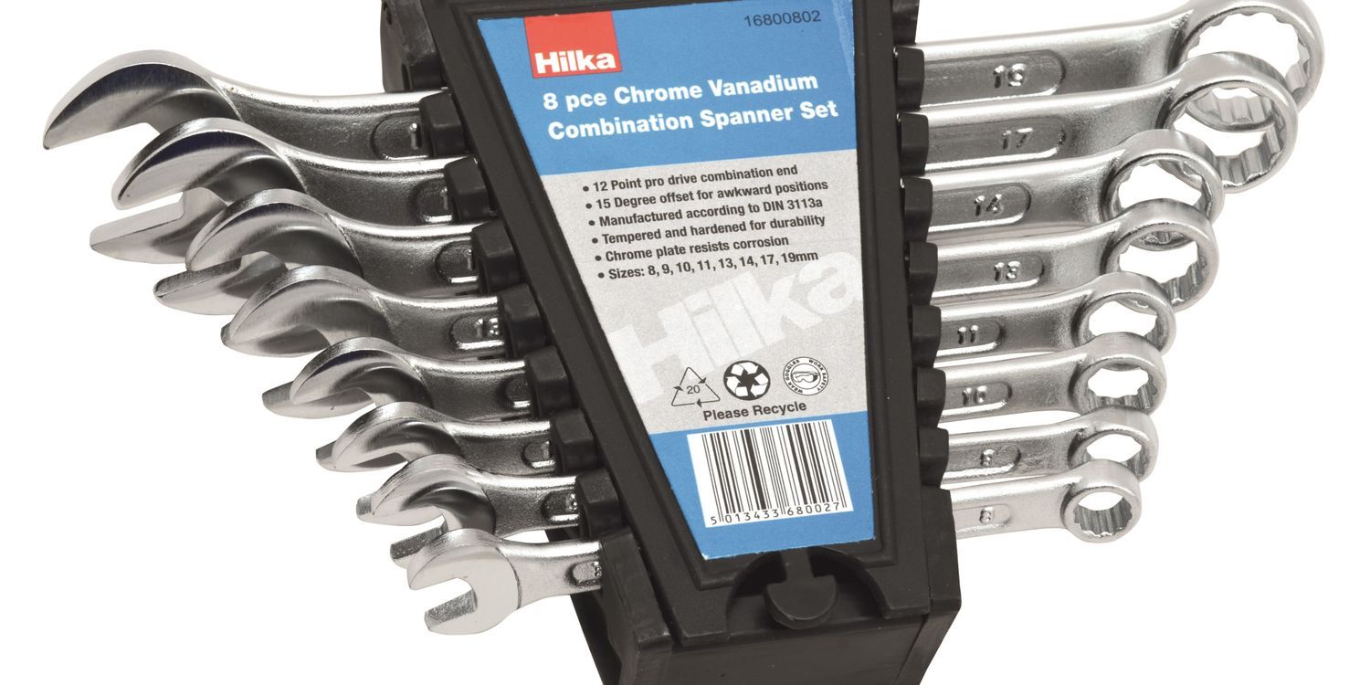 Tempered and hardened for durability with chrome plate that resists corrosion. 12 point pro drive combination end and 15 degree offset for awkward positions. Manufactured according to DIN 3113A. Sizes: 8, 9, 10, 11, 13, 14, 17, 19mm.