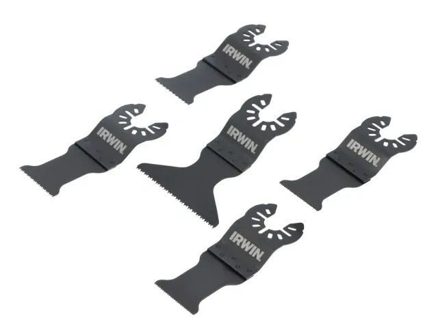 IRWIN® 5 Piece Oscillating Blade Set. Suitable for cutting a range of common materials; wood, plasterboard, PVC and nail embedded wood. Ideal for use on renovation jobs. Contains: