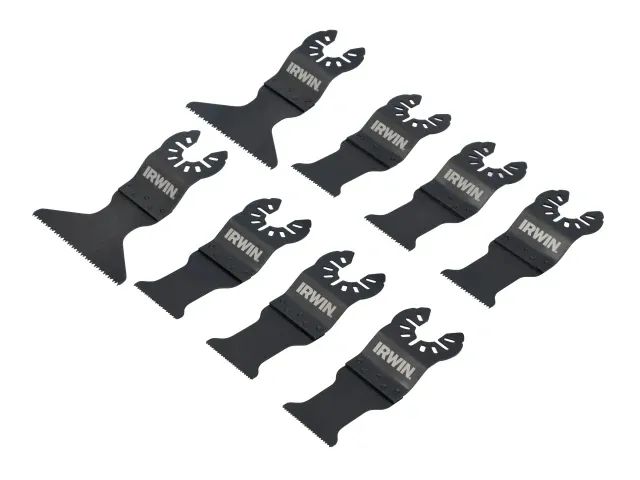 IRWIN® 8 Piece Oscillating Blade Set. Suitable for cutting a range of common materials; wood, plasterboard, PVC and nail embedded wood. Ideal for use on renovation jobs. Contains: