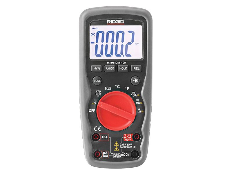 The Ridgid DM-100 Micro Digital Multimeter is a True RMS and AutoRanging unit, which provides accurate and fast measurements in all applications. It features 11 different electrical functions ranging from AC/DC Voltage and Current (1,000 volt) to temperature measurements.