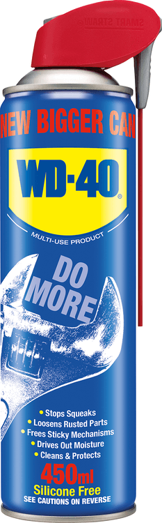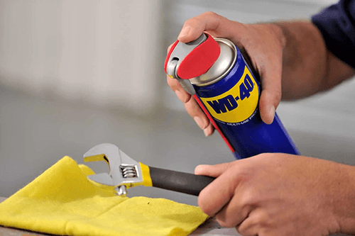 WD-40 protects metal from rust and corrosion, penetrates stuck or jammed parts, displaces moisture, and lubricates just about anything. WD-40 is also great when it comes to cleaning grease, grime, and other marks from most surfaces.