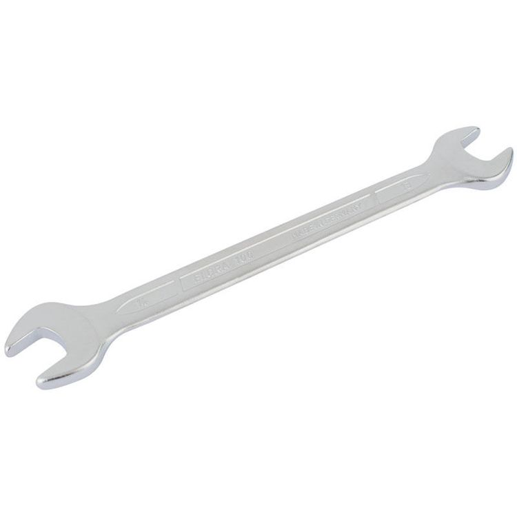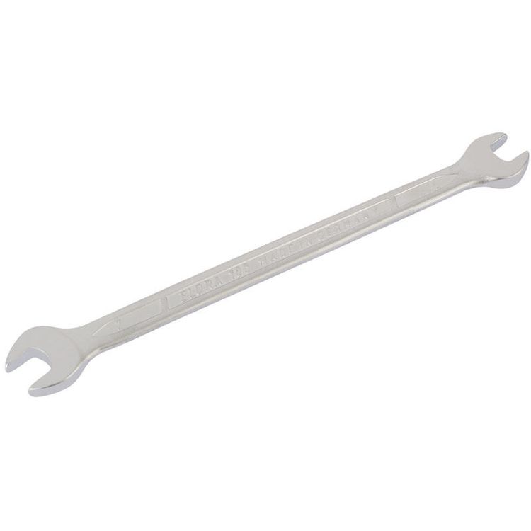 The Elora Long Metric Double Open End Spanner is designed for professionals requiring precision and durability. Forged from chrome vanadium steel, it is hardened, tempered, and chrome-plated for corrosion resistance. The jaws are accurately machined and offset at 15° for easier access in tight spaces.