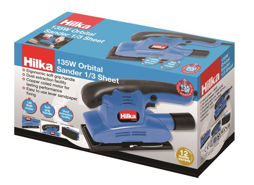 Lightweight 135w 1/3 sheet sander suitable for multipurpose sanding use. Ergonomic soft grip handle. Dust extraction facility. Copper coiled motor for lasting performance. Easy to use lever sandpaper fixing. No-load speed: 0-12,000rpm. Sanding pad size: 90 x 187mm. Supplied with: 1 sanding sheet and 1 dust connector.