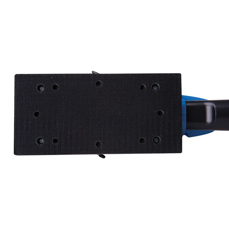 Ideal for preparing doors and windows for painting, or for fine sanding of walls and other flat surfaces. Ergonomically designed contoured main handle with large trigger switch for smooth operation, lock-on button and front handle make this tool easy to operate from any angle. Solid 90 x 187mm quick change hook and loop aluminium base with lever attachment for conventional sanding sheets. Sheet size 93 x 190mm (hook and loop), 95 x 230mm (clamped). Dust extraction port.