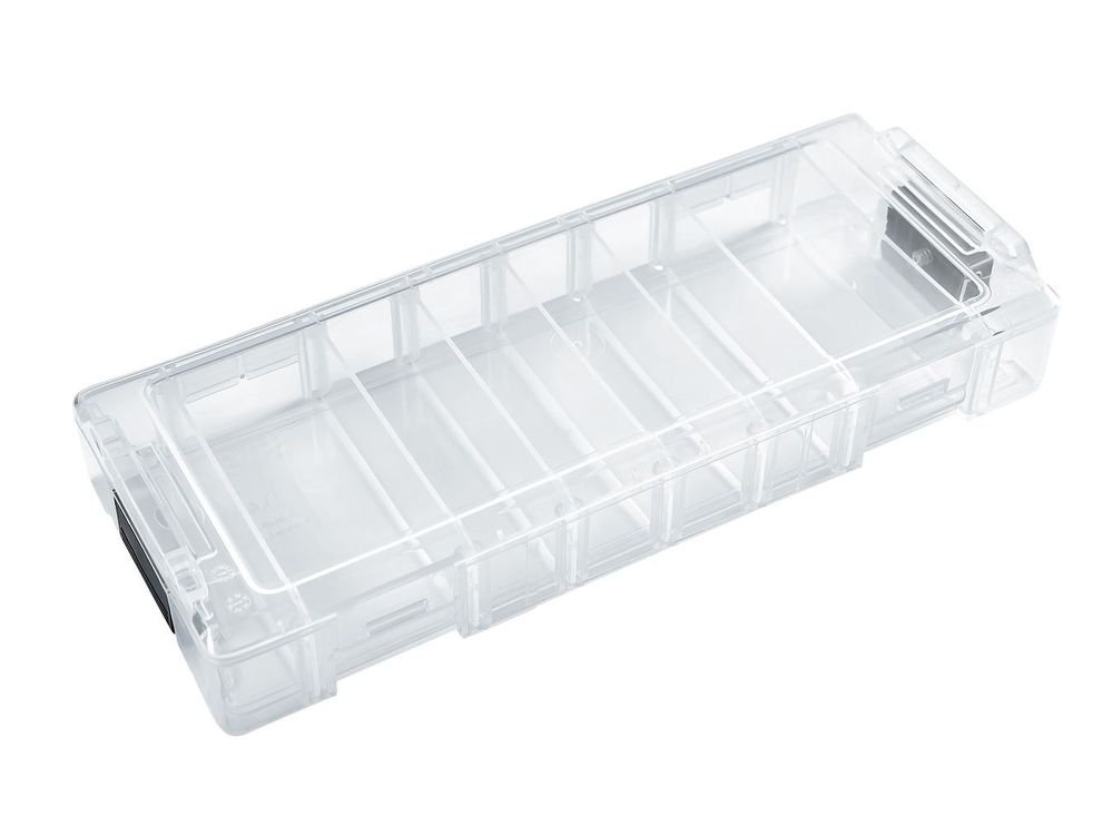 The Bosch Professional L-BOXX Micro enables safe transport and neat storage of accessories and consumables. Lightweight, fully transparent, and shatterproof assortment box with flexible dividers (up to 8 compartments). The L-BOXX Micro can be attached to the outside of an XL-BOXX. Thanks to the established click system, several boxes can be securely stacked on top of each other to provide maximum storage space.