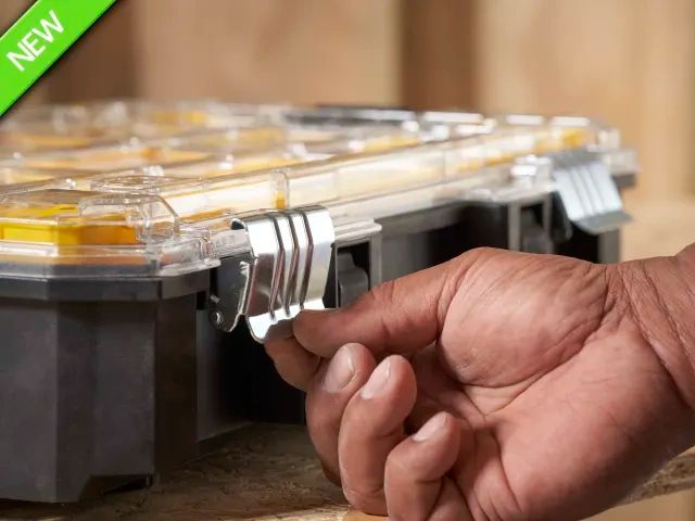 The STANLEY® FatMax® PRO-STACK™ Organiser features 10 removable cups and a strong, transparent, polycarbonate lid which provides clear and un-obstructed visibility of contents. Ideal for storing small parts, components and accessories. Complete with anti-rust metal latches for durability and a carry handle for easy transportation.