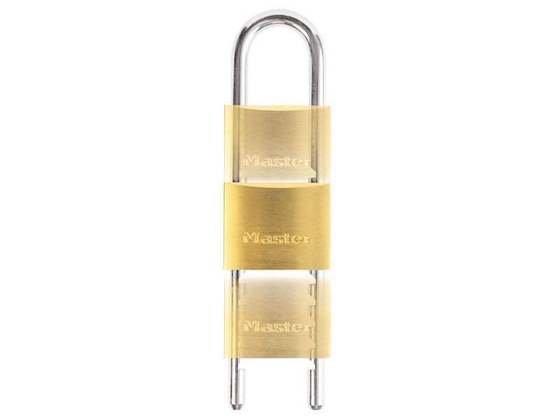 The Master Lock No. 1950EURD Solid Brass Padlock features a 50mm wide solid brass lock body which is strong, durable and resists corrosion. The 8mm diameter shackle can be adjusted from 60 to 150mm long for application flexibility; and is made of hardened steel, offering extra resistance to cutting and sawing.