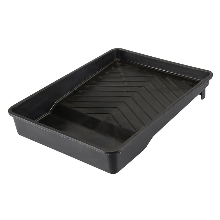 Durable black polypropylene roller tray, for use with all types of oil and water-based paint, varnish, lacquer and wallpaper paste. Textured base removes excess paint and ensures even loading.Use with tray liners or wash and reuse.