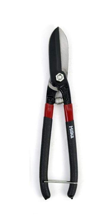 Drop forged carbon steel correctly hardened with heat-treated cutting edges. Corrosion resistant plated finish idea for cutting sheet metal, leather and plastic.