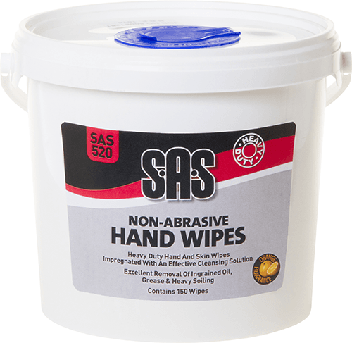 Heavy duty hand and skin wipes impregnated with an effective cleansing solution.