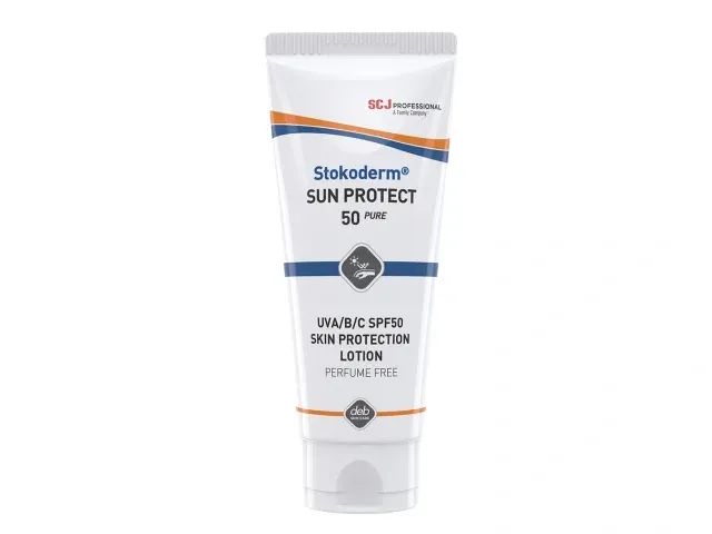 SC Johnson Professional Stokoderm® Sun Protect 50 PURE is a broad spectrum, perfume-free and water resistant SPF50 sunscreen. Ideal for professional use to protect the skin against harmful UVA, UVB and UVC rays. It has a water resistant formula. Tested to retain SPF50 protection after 80 minutes in water.