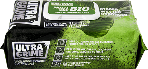 Super-size performance alcohol-free low foaming wipes for hands, tools, walls and all surfaces. 100% biodegradable to EN14046.