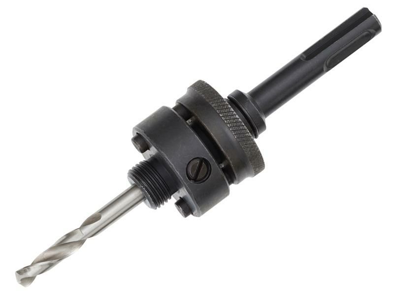 The DEWALT SDS-Plus Holesaw Mandrel is capable of fast, tool free changeovers. The quick release collar helps to prevent holesaw lock up. It comes with a Extreme pilot drill bit for faster drilling.