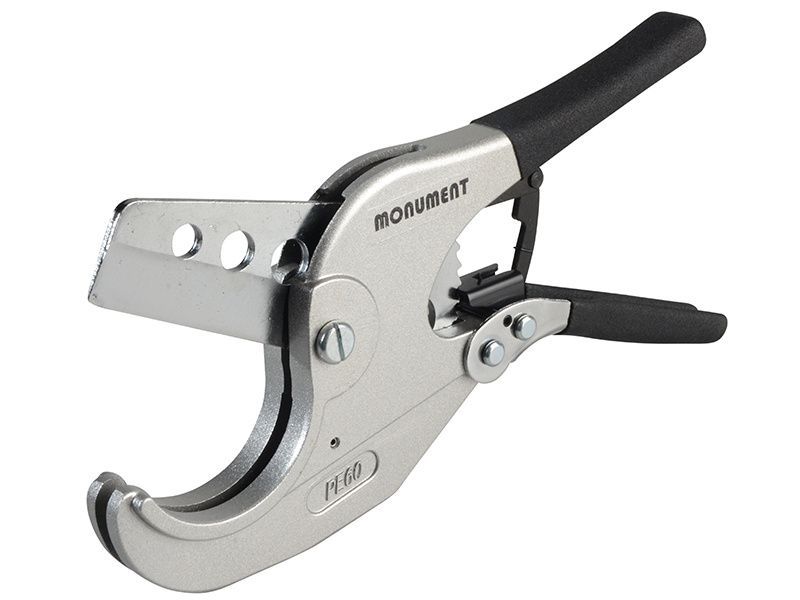Monument Plastic Pipe Cutter effective on PVC, polybutylene, MDP, polyethylene, HEP20®, plastic overflow pipe, plastic electrical conduit, supertube, mini trunking, rubber hose, pneumatic pipe and electrical sleeving.