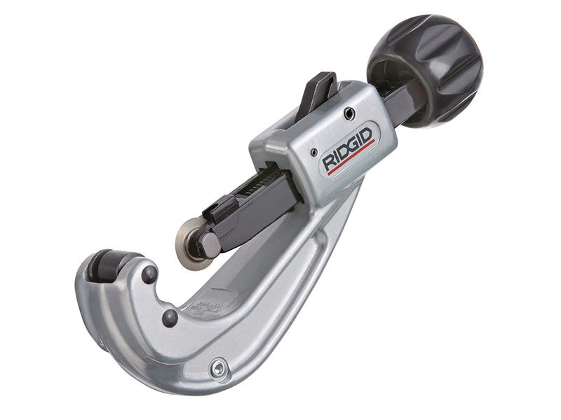 The Ridgid 152 quick acting tube cutter is designed for cutting plastic and metal tubing, this Ridgid cutter is quick-acting with an I-beam construction, hardened wear surfaces and thrust bearing slide assemblies for smooth operation. It also features a fold-away reamer.