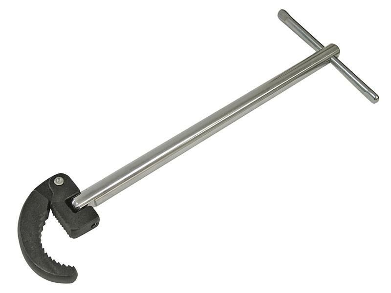 These Faithfull basin wrenches have adjustable spring action jaws that maintain an automatic grip on pipe fittings. The forged steel jaws turn 180° for greater flexibility. Essential tool for use on compression fittings, copper or polythene, on basins and baths.