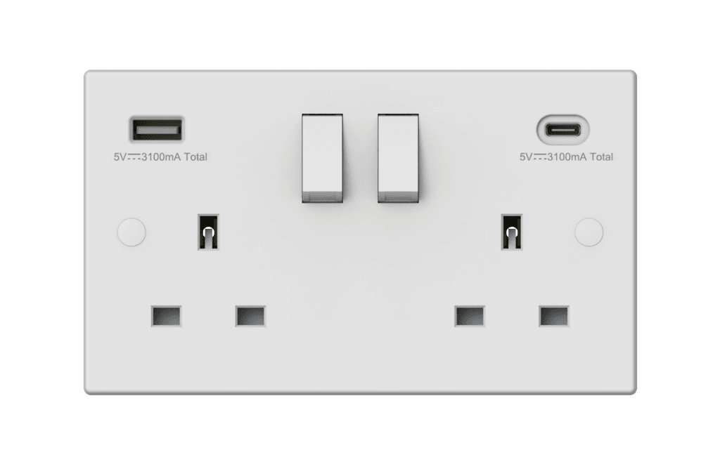 Securlec Square Switched Socket With USB A + C Double Pole 13amp