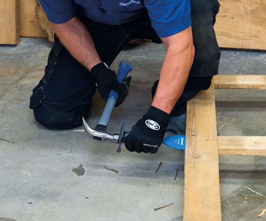 Forged, single-piece solid steel with a ground, hardened and tempered cutting edge. Octagonal shaft with protective hand guard. Powder coated for corrosion resistance. For demolition, cutting and shaping of bricks and blocks.