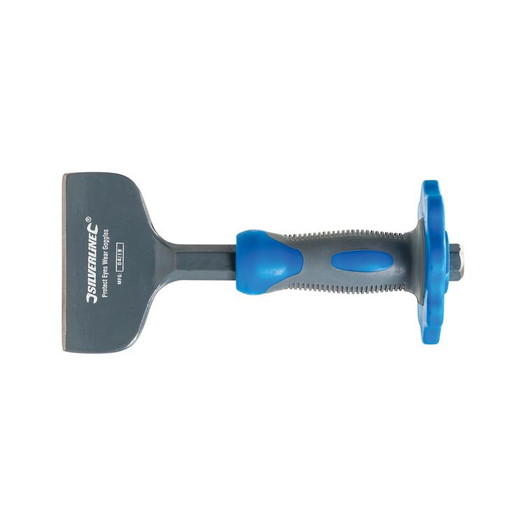 Forged, single-piece solid steel. Ground, hardened and tempered cutting edge. Double-injected soft-grip hand guard. Powder coated for corrosion resistance. For demolition, cutting and shaping of bricks and blocks.