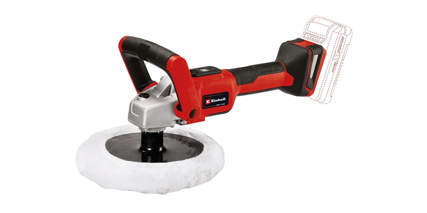 The Einhell CE-CP 18/180 Li E-Solo Power X-Change Polisher is powered by the Einhell PurePOWER brushless motor. This brushless motor offers more power and a longer running time than conventional carbon brush motors. After registering online, the brushless motor comes with a 10-year warranty. A large polishing disk with a diameter of 180 millimetres enables speedy work. Thanks to the electronic speed control via LCD display, DIY enthusiasts can adjust the speed to each specific application easily and with just a glance.