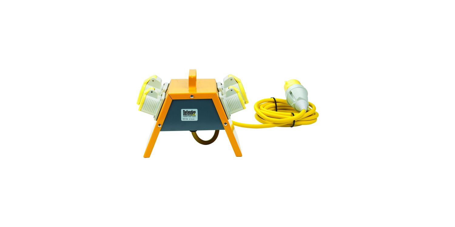 Tough steel box in sturdy design ensures the unit stays upright on the harshest of surfaces. Allows connection of 2 x 16A & 2 x 32A applications at any one time. Ideal for use with small and medium-sized power tools and lights. Features carry handle for quick relocation. IP44 rated for optimum safety in dusty environments. BSEN 5733 compliant. Supplied with 32A 110V plug and 3m cable. Dimensions: 225 x 130 x 250mm. Weight 3.5kg.