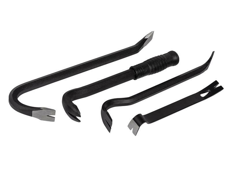 The Roughneck® Toolbox Bar Set contains 4 different bars, which are all drop forged, heat treated and powder coated, will nail removing tips. The Wrecking Bar, Nail Puller and Mini Utility Bar all have polished tips. The Nail Puller is fitted with a soft grip handle for increased comfort.