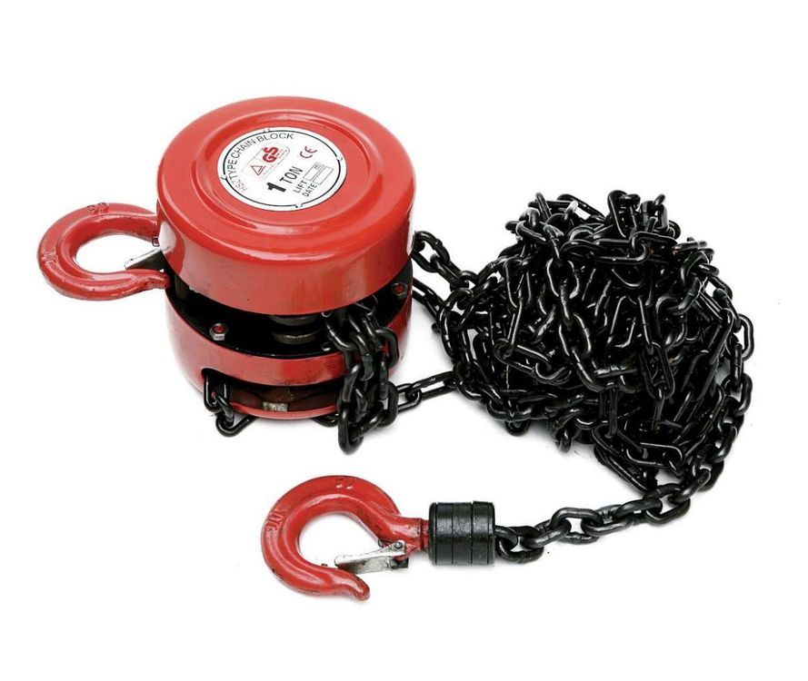 Heavy duty lifting block and chain with smooth rolling design. Low pulling force required for effortless operation. 1000kg safe working load. Lifting height: 3m. Ideal for general workshop and industrial use. Durable and hardened alloy steel chains with safety latch hook. Product weight 10.5kg.