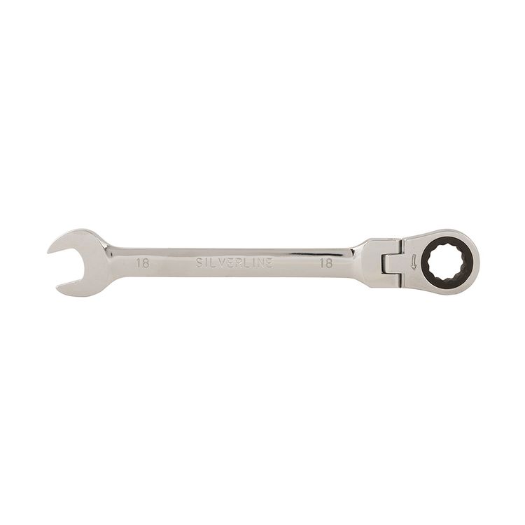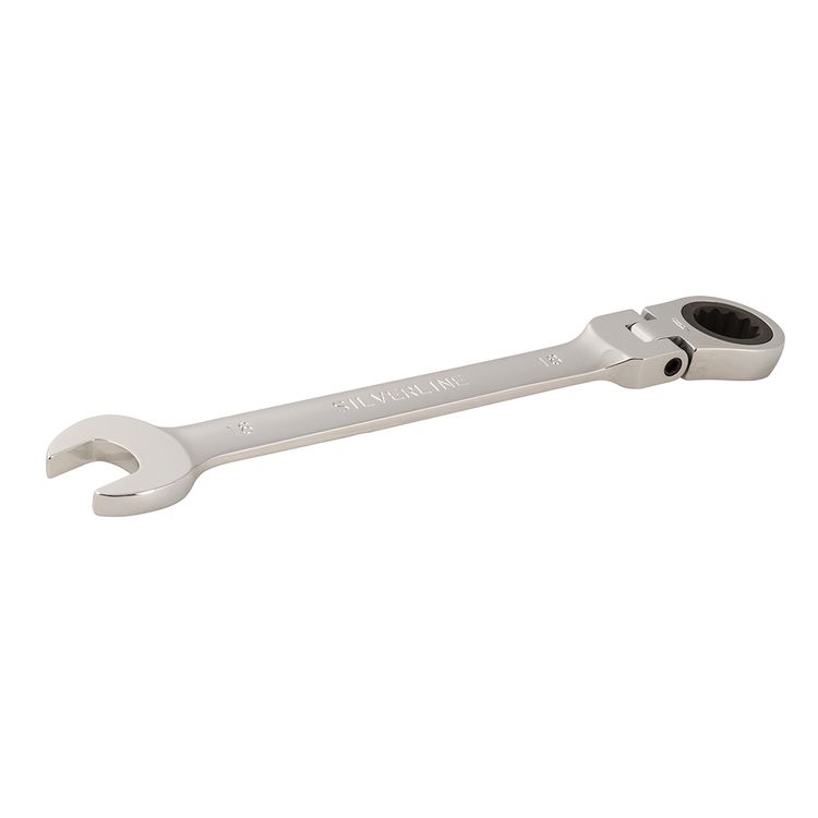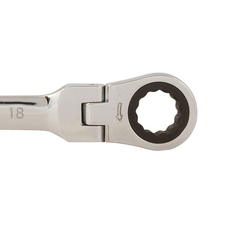Hardened and tempered, chrome vanadium metric spanner with mirror-polished finish. Chrome plated for rust resistance. 5° ratchet action. 180° pivoting head. Provides access to nuts and bolts in tighter spaces.