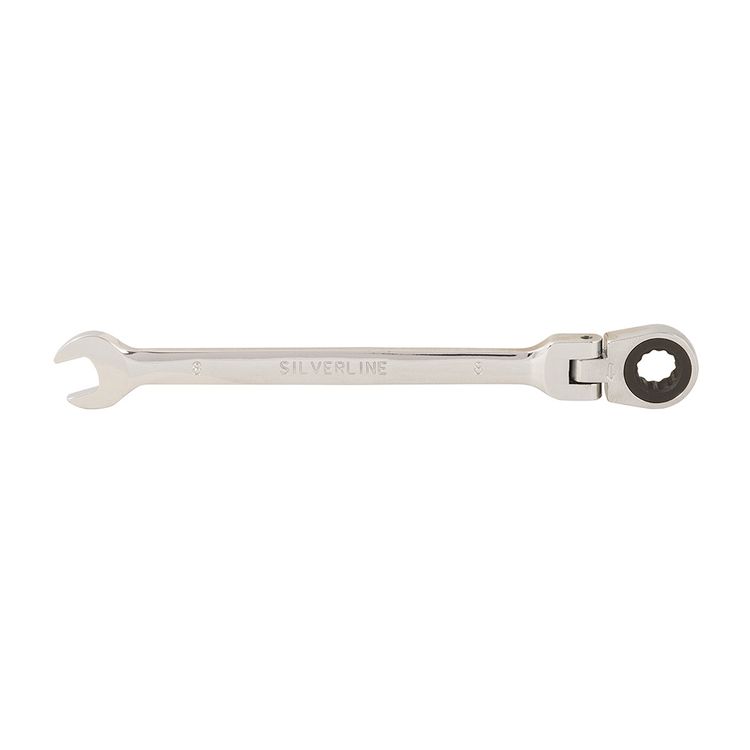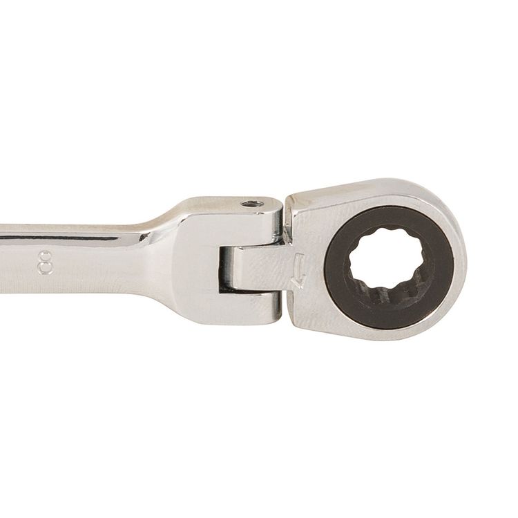 Hardened and tempered, chrome vanadium metric spanner with mirror-polished finish. Chrome plated for rust resistance. 5° ratchet action. 180° pivoting head. Provides access to nuts and bolts in tighter spaces.