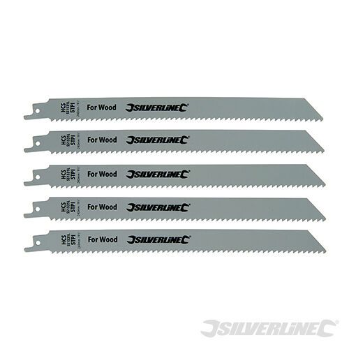 High carbon steel blades for fast rough cuts in wood. Ideal for pruning trees and shrubs, cutting roots, pallet wrecking and firewood. 5.2mm tooth pitch. Compatible with all universal 1/2" shank recip and sabre saws.