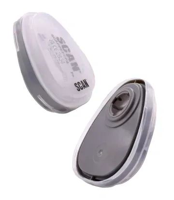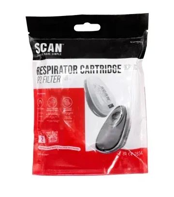 These Scan Twin Half Mask P2 Particle Filter Cartridges are suitable for use with the Scan SCAPPERESPMO 1/2 mask respirator and SCAPPERESPFF full face respirator. Used to protect against particles such as dust, smoke and aerosols. They filter out up to 94% of contaminants.