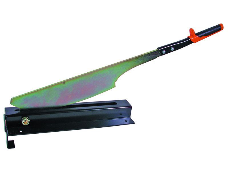 Guillotine type heavy-duty roof slate tile cutter of 210mm (8.1/4in) capacity. Designed to cut slates up to 7mm (9.3/2in) thick.
