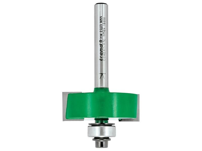 This Trend Craft Pro 1/4in shank Bearing Guided Rebater, router cutter, has a 35mm diameter and two flute carbide tips for cleaner cutting edges and fast clearance of waste in all timber and timber-based materials.