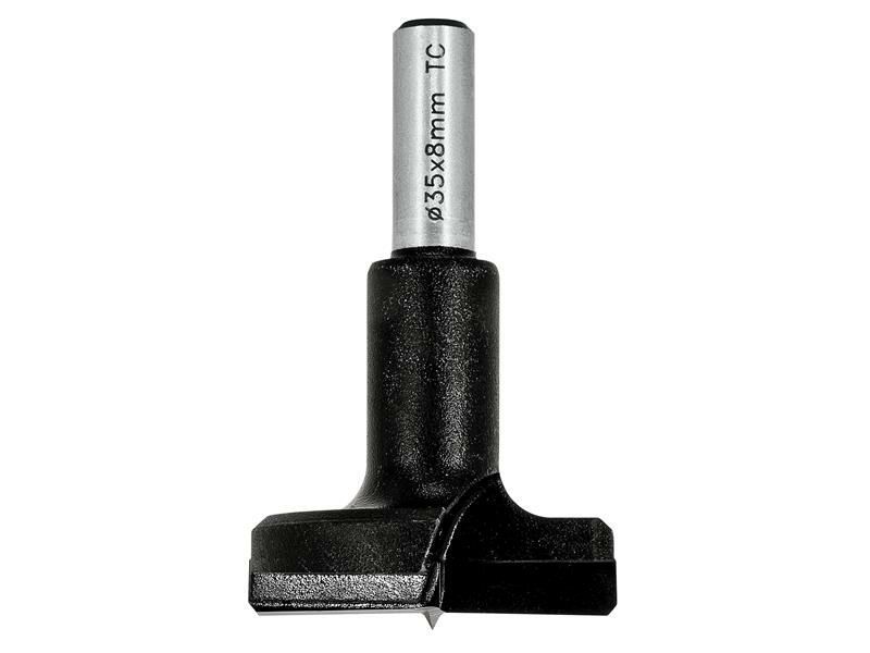 TCT Hinge sinking cutter for pillar drills only. Designed for recessing holes in melamine covered chipboard to receive circular hinges.