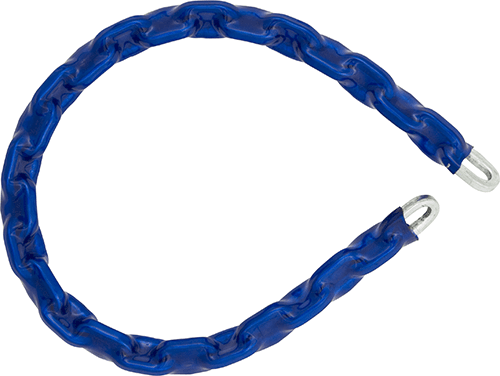Square link with blue thermo wrapped sheath. Hacksaw and bolt cutter resistant.