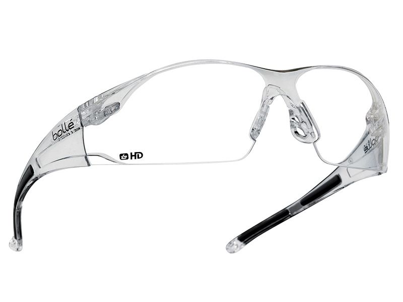 The Bollé Safety RUSH Safety Glasses are lightweight protective glasses with upper protection from the frame. They offer a panoramic visual field, with a modern design that is comfortable to wear. The lenses have an anti-scratch, anti-fog coating, and the frame has anti-slip temples. Supplied with an adjustable cord.