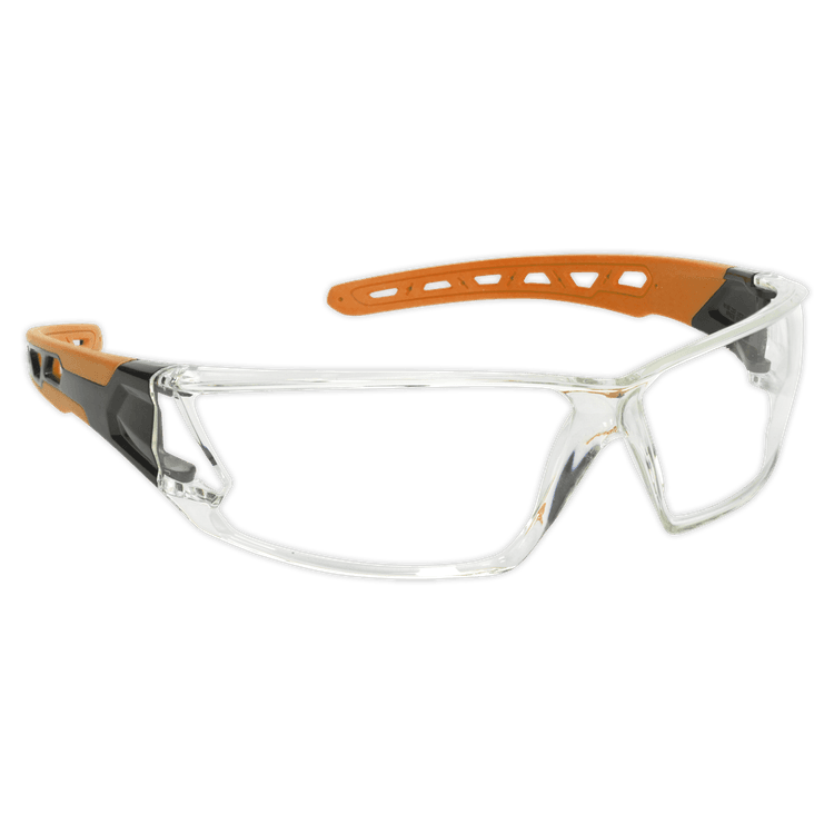 Keep your eyes safe and protected when working with tools with the Sealey Safety Spectacles. These modern, lightweight glasses feature a clever wraparound design with flexible TPR arms, which offers added protection and increased user comfort, even when worn for an extended time.