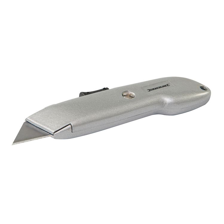 Lightweight knife with strong, zinc alloy body and extra-safe, automatically retracting blade. Interlock nose for blade security. Internal blade storage. Includes 3 x hardened steel blades.