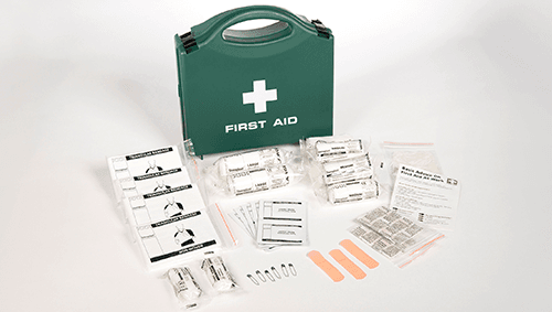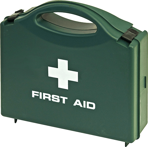 • All cases marked with white cross and 'First Aid' for ease of identification