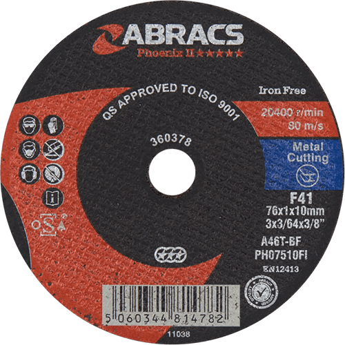 Superior quality European manufactured and produced to OSA safety standards. For use on stainless steel, sheet metal, mild steel and high grade steel. Suitable for use on an angle grinder.