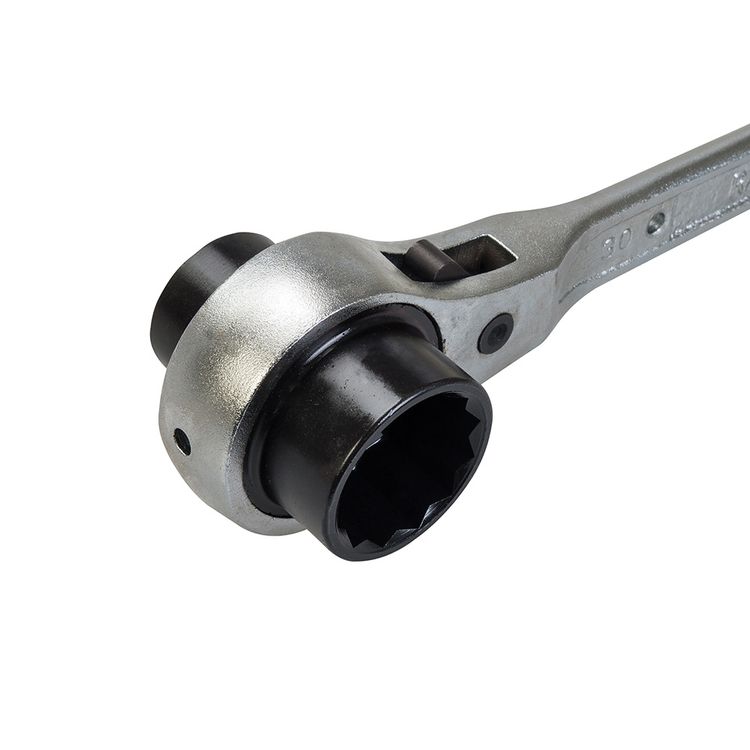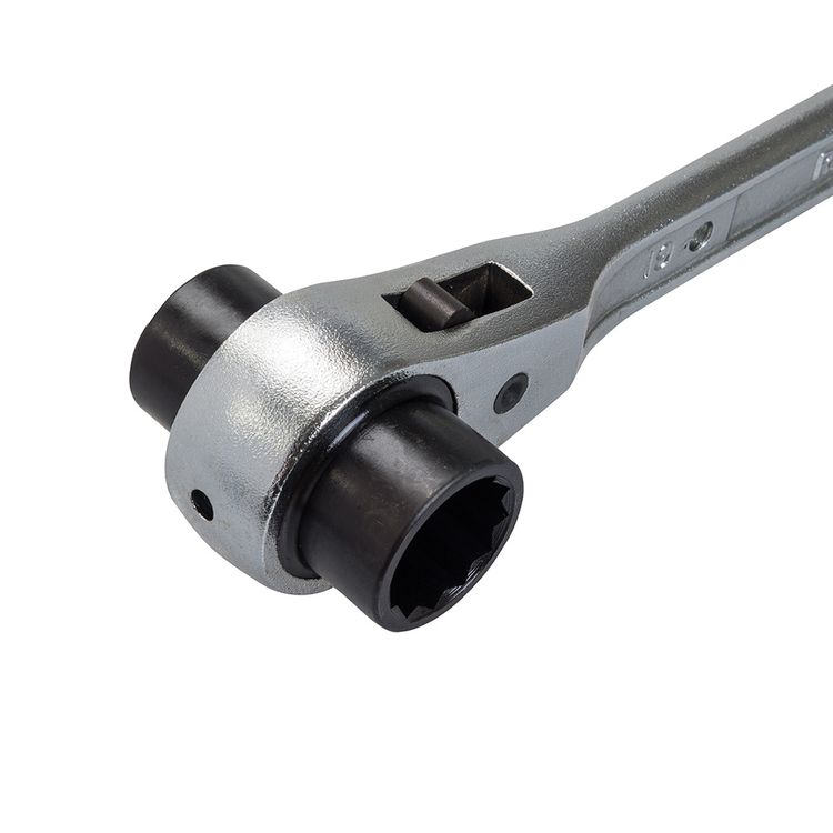 Featuring two off-the-point drive socket heads and a heavy-duty 32-tooth ratchet mechanism, this tool offers versatility and reliability on-site. Manufactured to DIN 475 standards, it ensures long-lasting professional performance.
