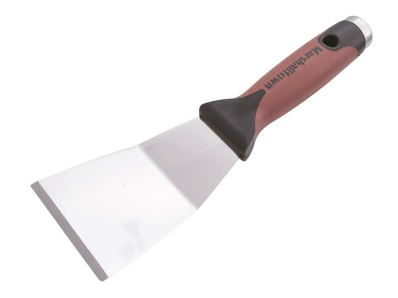 This Marshalltown Bent Scraper is perfect for removing vinyl flooring, carpet, wallpaper, and adhesives. It is fitted with a resilient DuraSoft® handle that provides a soft feel, reduces fatigue, and offers excellent durability. Its a threaded end accepts standard broom handles.